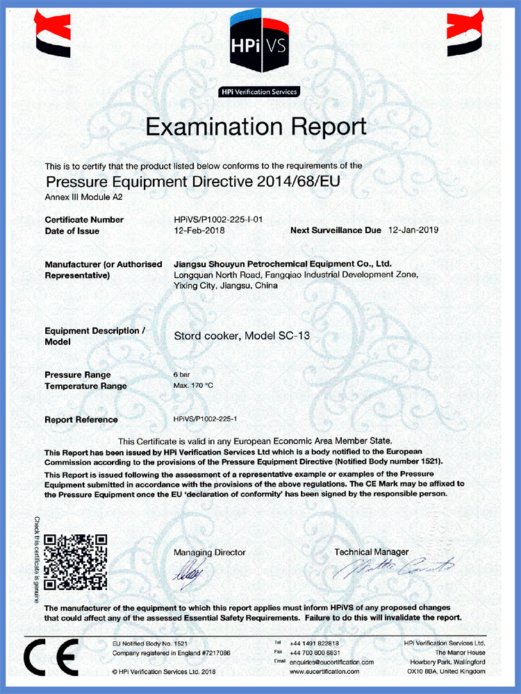 SC-13蒸煮器 HPI PED證書