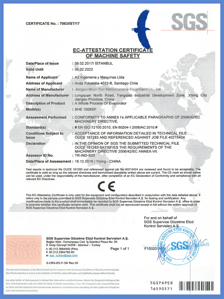 蒸發(fā)器SGS CE證書